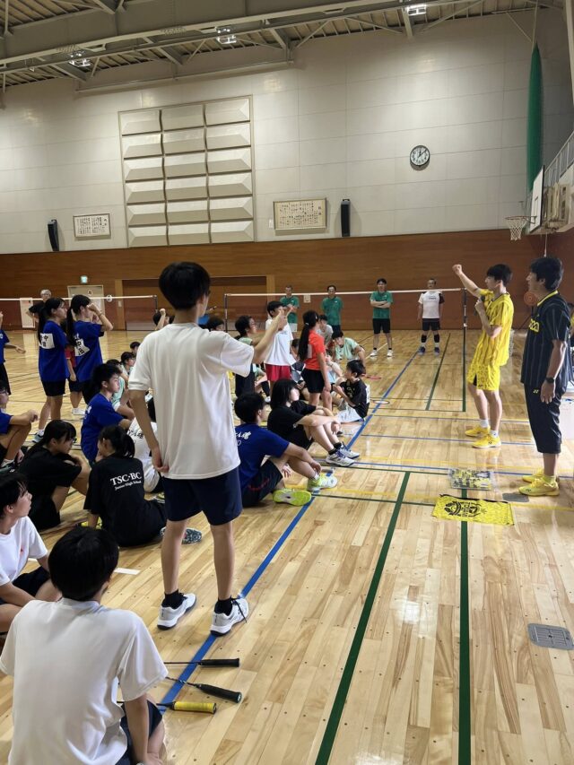 9月13日に富山県南砺市講習会が開催され、当社バドミントンチームスタッフ・選手を含む11名が参加し小・中・高生と一緒に汗を流しました。パターン練習や、ゲーム練習を中心に行い、短い時間でしたが充実した講習会となりました。
