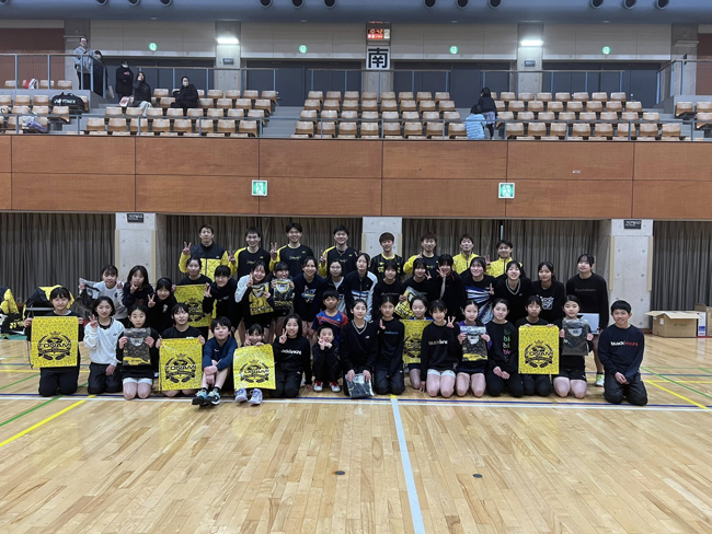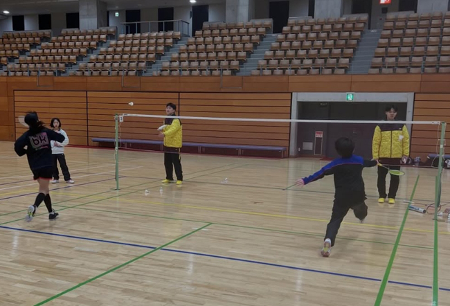 3月14日に富山県砺波市で講習会が開催され、当社バドミントンチームスタッフ・選手を含む9名が講師として参加し、砺波市の小・中学生の選手たちと共に汗を流しました。