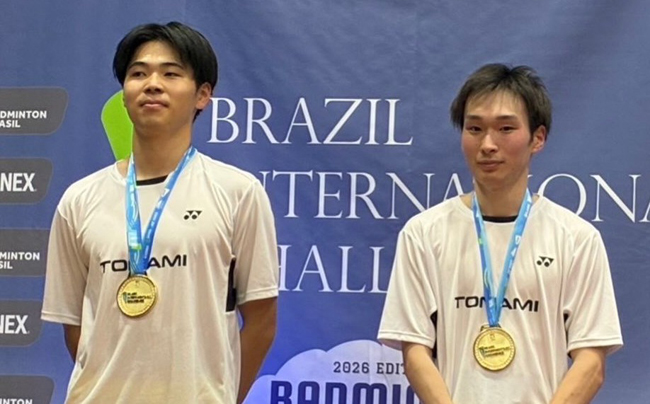 3月24日から29日まで開催された、ブラジルインターナショナルチャレンジ2026に於いて、男子ダブルスで内定選手、後藤・奥ペアが見事優勝を飾りました。西田・草ノ瀬ペアは3位でした。また男子シングルスでは花田選手が準優勝となりました。